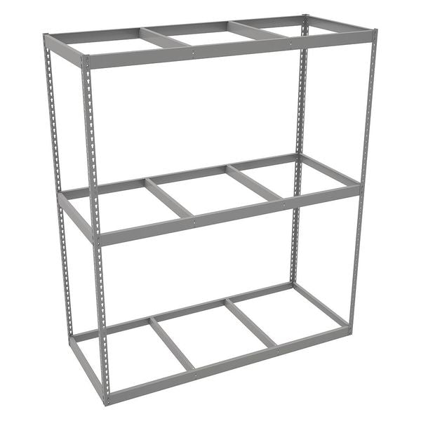 $401.24 / eachWeb priceBoltless Shelving Unit, 30-5/8"D x 72-5/8"W x 84"H, 3 Shelves, SteelSKU G2000280CategoriesDescription Boltless Shelving, Angle, Overall Depth 30 in, Overall Height 84 in, Overall Width 72 in, Shelf Gauge 14 ga, Shelf Adjustment Increments 1 1/2 in, Steel, None, Steel, (12) Beams, (4) Posts, Includes Decking No, 1,750 lb, Whole Unit Load Capacity 5,250 lb, Starter, Open, SCS Indoor Advantage(R) Certified, Post Gauge 14 ga, Number of Shelves 3, Maximum Post Load Capacity 8,000 lb with Beams Evenly Spaced at 24 in, Powder Coated, Heavy-Duty, GraygraingerSKU: 44P176, mscSKU: , zoro_no: G2000280, mongo_id: 65bbea1722d7a989a999642a
