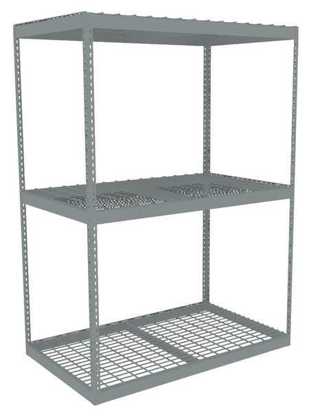 SKU G1999617CategoriesDescription Boltless Shelving, Channel, Overall Depth 30 in, Overall Height 84 in, Overall Width 60 in, Shelf Gauge 14 ga, Shelf Adjustment Increments 1 1/2 in, Steel, None, Steel, (12) Beams, (4) Posts, Includes Decking No, 2,250 lb, Whole Unit Load Capacity 6,750 lb, Starter, Open, SCS Indoor Advantage(R) Certified, Post Gauge 14 ga, Number of Shelves 3, Maximum Post Load Capacity 13,000 lb with Beam Evenly Spaced at 24 in, Powder Coated, Heavy-Duty, GraygraingerSKU: 44P114, mscSKU: , zoro_no: G1999617, mongo_id: 65bbea6b22d7a989a99b3002