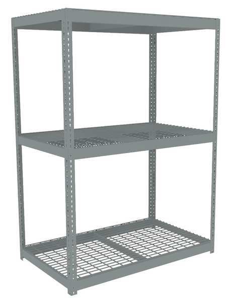 $296.24 / eachWeb priceBoltless Shelving Unit, 30-5/8"D x 60-5/8"W x 84"H, 3 Shelves, SteelSKU G2000122CategoriesDescription Boltless Shelving, Angle, Overall Depth 30 in, Overall Height 84 in, Overall Width 60 in, Shelf Gauge 14 ga, Shelf Adjustment Increments 1 1/2 in, Steel, None, Steel, (12) Beams, (4) Posts, Includes Decking No, 2,000 lb, Whole Unit Load Capacity 6,000 lb, Starter, Open, SCS Indoor Advantage(R) Certified, Post Gauge 14 ga, Number of Shelves 3, Maximum Post Load Capacity 8,000 lb with Beams Evenly Spaced at 24 in, Powder Coated, Heavy-Duty, GraygraingerSKU: 44P166, mscSKU: , zoro_no: G2000122, mongo_id: 65bbe8c222d7a989a9915127