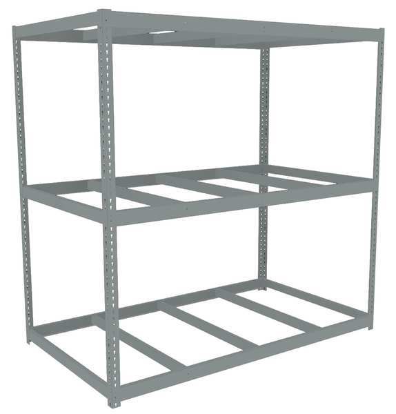 $632.49 / eachWeb priceBoltless Shelving Unit, 48-5/8"D x 96-5/8"W x 60"H, 3 Shelves, SteelSKU G2198430CategoriesDescription Boltless Shelving, Angle, Overall Depth 48 in, Overall Height 60 in, Overall Width 96 in, Shelf Gauge 14 ga, Shelf Adjustment Increments 1 1/2 in, Steel, None, Steel, (3) Deck Levels, (4) Posts, Includes Decking No, 1,250 lb, Whole Unit Load Capacity 3,750 lb, Starter, Open, SCS Indoor Advantage(R) Certified, Post Gauge 14 ga, Number of Shelves 3, Maximum Post Load Capacity 8,000 lb with Beams Evenly Spaced at 24 in, Powder Coated, Heavy-Duty, GraygraingerSKU: null, mscSKU: null, zoro_no: G2198430, mongo_id: 65bbe6263aaddbd5a900edd5