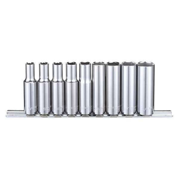 SKU G1574741CategoriesDescription Socket Set, Standard Socket Count/Style None, Deep Socket Count/Style (9) 6-Point, Deep Socket Style/Size Deep 6-Point: 1/2 in, 1/4 in, 11/32 in, 3/8 in, 5/16 in, 5/8 in, 7/16 in, 9/16 in, 9/32 in, Flex Socket Count/Style None, Hand, Drive Size 3/8 in, SAE, 6-Point, ChromegraingerSKU: 53PN39, mscSKU: , zoro_no: G1574741, mongo_id: 65bbe7b19a749db82274ebfd