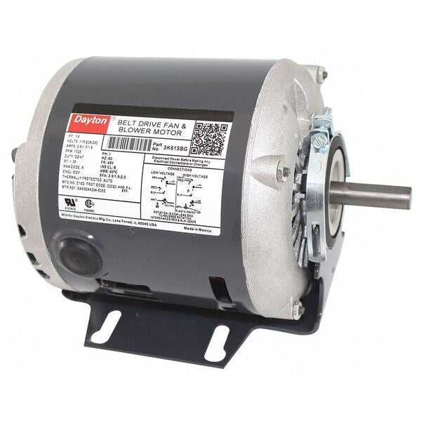 SKU G2793786CategoriesDescription Belt Drive Motor, Single Phase, Motor Design Split-Phase, 1/6 HP, Nameplate RPM 1,725, No. of Speeds 1, Voltage 115/208-230V AC, 3.6/1.80-1.70 Full Load Amps, 48 Frame, 60 Hz, Motor Service Factor 1.35, Motor Thermal Protection Auto, Ins. Class B, Max. Ambient Temp. 104 Degrees F, Duty Cycle Continuous, Motor Shaft Rotation CW/CCW, Motor Enclosure Design Open Dripproof, Motor Mounting Type Cradle Base, Motor Mounting Position All Angle, Motor Frame Material Rolled Steel, Shaft Dia. 1/2 ingraingerSKU: 3K613, mscSKU: , zoro_no: G2793786, mongo_id: 65bbe88b22d7a989a98fef00