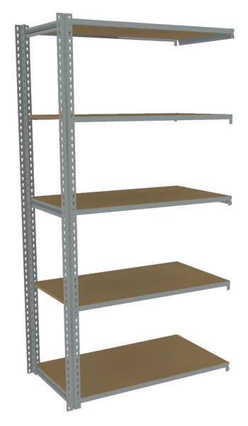 $367.49 / eachWeb priceBoltless Shelving, 24"D x 48"W x 84"H, 5 Shelves, Carbon SteelSKU G1972463Categories Raw MaterialsDescription Boltless Shelving, Low Profile, Overall Depth 24 in, Overall Height 84 in, Overall Width 48 in, Shelf Gauge 14 ga, Shelf Adjustment Increments 1 1/2 in, Steel, Particleboard, Steel, (2) Posts, (5) Low Profile Deck Levels, Includes Decking Yes, 500 lb, Whole Unit Load Capacity 2,500 lb, Add-On, Open, Post Gauge 16 ga, Number of Shelves 5, Maximum Post Load Capacity 8,000 lb with Beams Evenly Spaced at 24 in, Powder Coated, Light-Duty, GraygraingerSKU: 36K441, mscSKU: , zoro_no: G1972463, mongo_id: 65bbe90e22d7a989a9931c99