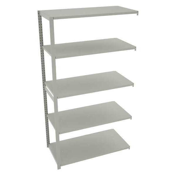 SKU G1972253Categories Raw MaterialsDescription Boltless Shelving, Low Profile, Overall Depth 24 in, Overall Height 84 in, Overall Width 48 in, Shelf Gauge 14 ga, Shelf Adjustment Increments 1 1/2 in, Steel, None, Steel, (2) Posts, (5) Low Profile Deck Levels, Includes Decking No, 500 lb, Whole Unit Load Capacity 2,500 lb, Add-On, Open, SCS Indoor Advantage(R) Certified, Post Gauge 16 ga, Number of Shelves 5, Maximum Post Load Capacity 8,000 lb with Beams Evenly Spaced at 24 in, Powder Coated, Light-Duty, GraygraingerSKU: 36K417, mscSKU: , zoro_no: G1972253, mongo_id: 65bbe7d19a749db82275b2c1
