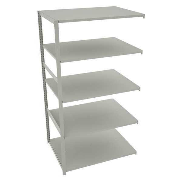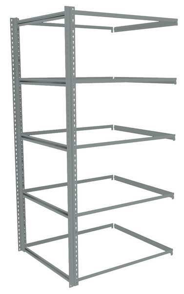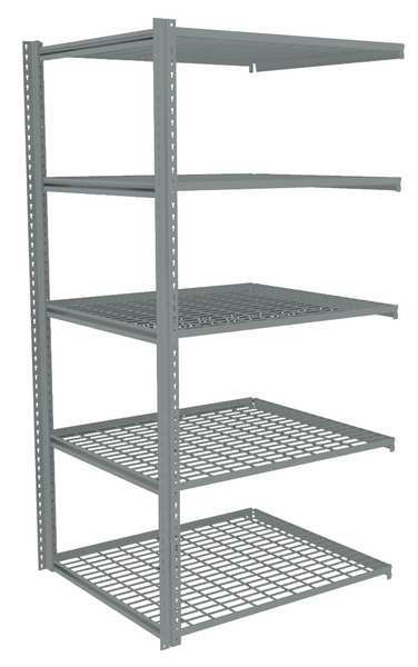$709.99 / eachWeb priceBoltless Shelving, 36"D x 48"W x 84"H, 5 Shelves, SteelSKU G2158707CategoriesDescription Boltless Shelving, Z-Beam, Overall Depth 36 in, Overall Height 84 in, Overall Width 48 in, Shelf Gauge 14 ga, Shelf Adjustment Increments 1 1/2 in, Steel, Steel, Steel, (12) Shelf Clips, (2) Posts, (6) Beams, Includes Decking Yes, 450 lb, Whole Unit Load Capacity 2,250 lb, Add-On, Open, SCS Indoor Advantage(R) Certified, Post Gauge 16 ga, Number of Shelves 5, Maximum Post Load Capacity 8,000 lb with Beams Evenly Spaced at 24 in, Powder Coated, Light-Duty, Medium GraygraingerSKU: 44P797, mscSKU: , zoro_no: G2158707, mongo_id: 65bbe8219a749db822777d1f