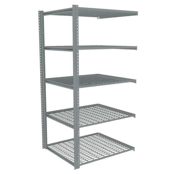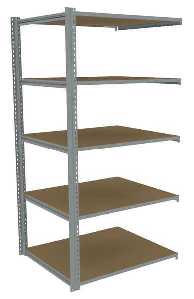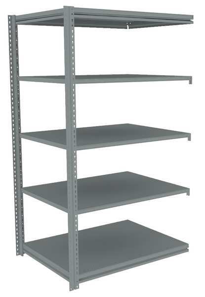 $569.99 / eachWeb priceBoltless Shelving, 36"D x 48"W x 84"H, 5 Shelves, Carbon SteelSKU G9876684Categories Raw MaterialsDescription Boltless Shelving, Low Profile, Overall Depth 36 in, Overall Height 84 in, Overall Width 48 in, Shelf Gauge 14 ga, Shelf Adjustment Increments 1 1/2 in, Steel, Steel, Steel, (2) Posts, (20) Beams, Includes Decking Yes, 500 lb, Whole Unit Load Capacity 2,500 lb, Add-On, Open, SCS Indoor Advantage(R) Certified, Post Gauge 16 ga, Number of Shelves 5, Maximum Post Load Capacity 8,000 lb with Beams Evenly Spaced at 24 in, Powder Coated, Light-Duty, GraygraingerSKU: 44P766, mscSKU: , zoro_no: G9876684, mongo_id: 65bbea6b22d7a989a99b2ff0