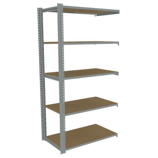 Description Boltless Shelving, Z-Beam, Overall Depth 36 in, Overall Height 84 in, Overall Width 42 in, Shelf Gauge 14 ga, Shelf Adjustment Increments 1 1/2 in, Steel, Particleboard, Steel, (2) Posts, (20) Beams, Includes Decking Yes, 900 lb, Whole Unit Load Capacity 4,500 lb, Add-On, Open, Post Gauge 16 ga, Number of Shelves 5, Maximum Post Load Capacity 8,000 lb with Beams Evenly Spaced at 24 in, Powder Coated, Medium-Duty, Gray