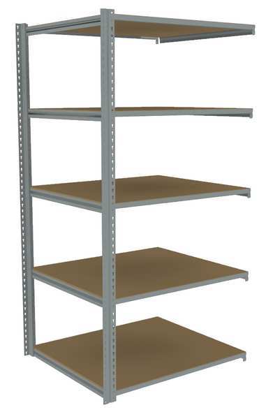 Description Boltless Shelving, Z-Beam, Overall Depth 30 in, Overall Height 84 in, Overall Width 42 in, Shelf Gauge 14 ga, Shelf Adjustment Increments 1 1/2 in, Steel, Particleboard, Steel, (2) Posts, (20) Beams, Includes Decking Yes, 900 lb, Whole Unit Load Capacity 4,500 lb, Add-On, Open, Post Gauge 16 ga, Number of Shelves 5, Maximum Post Load Capacity 8,000 lb with Beams Evenly Spaced at 24 in, Powder Coated, Medium-Duty, Gray