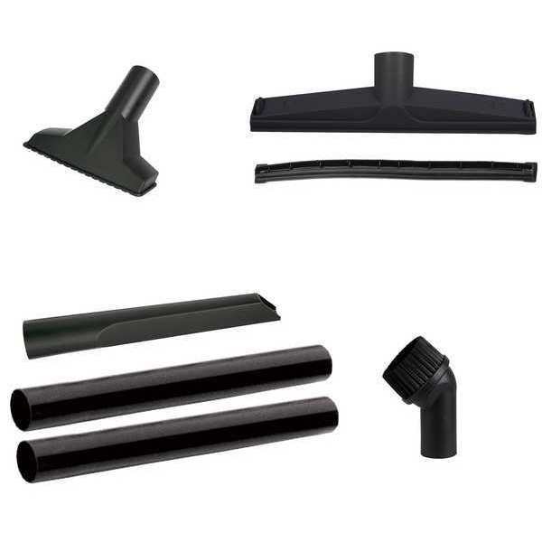 Description Shop Vacuum Accessory Kit, For Hose Diameter 1 1/4 in, Includes (2) 1 1/4 in Plastic Extension Wands, Crevice Tool, Deluxe 12 in Master Nozzle with Brush & Squeegee Inserts, Dusting Brush, Utility Nozzle, For Vacuum Type Shop Vacuum, Fits Vacuum Brand Dayton, Fits Vacuum Models All Vacuums with 1 1/4 in Hose Diameter