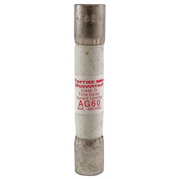 SKU G1549791CategoriesDescription Fuse, 60 A, 480V AC, Not Rated, Class G, AG Series, Nonindicating, Time Delay, Body Style Cylindrical, Rejection, Interrupt Rating 100kA at 480V AC, Fuse Size 2-1/4 in L x 13/32 in dia, Length 2 1/4 in, Diameter 13/32 in, Equivalent Brand and Series Bussmann SC, Littelfuse SLC, Mersen AG, Equivalent Series AG, SC, SLC, Body Material Fiberglass, Dual Element, Standards CSA Certified to C22.2 No. 248.5, UL Listed 248-5graingerSKU: 5LCP4, mscSKU: , zoro_no: G1549791, mongo_id: 65bbe76b3aaddbd5a90930ca