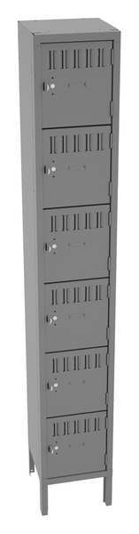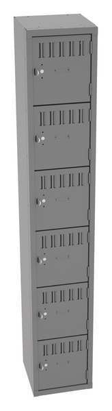 Box Locker, 12 in W, 15 in D, 78 in H, (1) Wide, (6) Openings, Gray