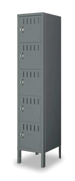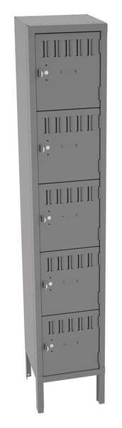 Box Locker, 12 in W, 15 in D, 66 in H, (1) Wide, (5) Openings, Gray