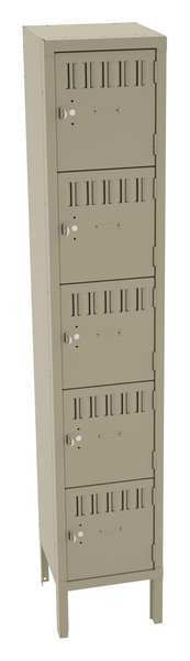 SKU G5835033CategoriesDescription Box Locker, Audit Trail Storage None, Frame Assembled Assembled, Number of Tiers 5, Number of Units Wide 1, Door Type Louvered, Frame Material Thickness 16 ga, Includes Number Plates Yes, Locker Color Tan, Lock Type Padlock Hasp, Overall Depth 15 in, Overall Height 66 in, Overall Width 12 in, Handle Type Pull, Includes ID Plate, Locker Material Steel, Number of Lockers 5, Opening Depth 13 7/8 in, Opening Height 10 5/8 in, Opening Width 9 5/8 ingraingerSKU: 5ZJ59, mscSKU: , zoro_no: G5835033, mongo_id: 65bbe80722d7a989a98d22c6