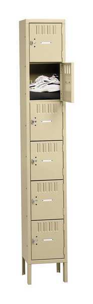Box Locker, 12 in W, 15 in D, 78 in H, (1) Wide, (6) Openings, Sand