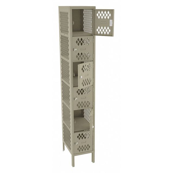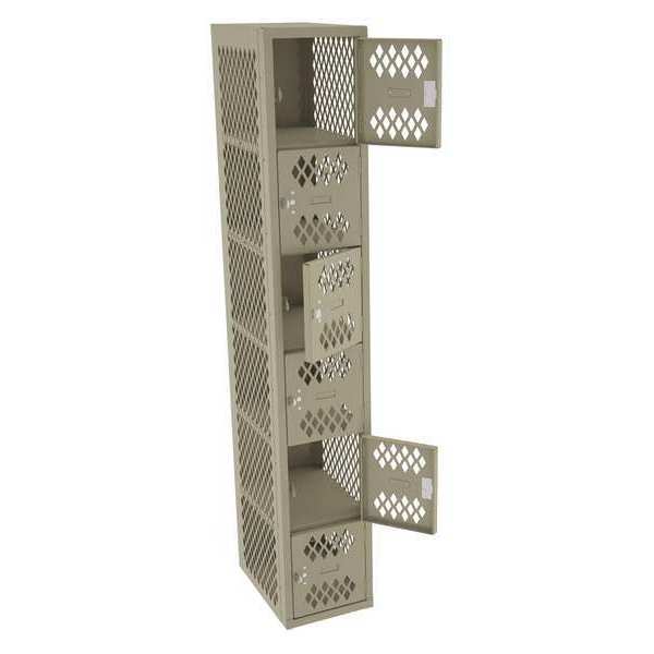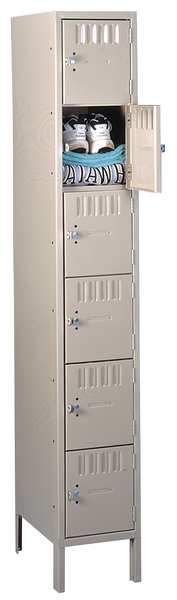 Box Locker, 12 in W, 18 in D, 66 in H, (1) Wide, (5) Openings, Sand