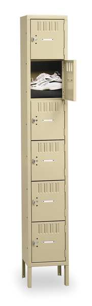 Box Locker, 12 in W, 18 in D, 72 in H, (1) Wide, (6) Openings, Sand