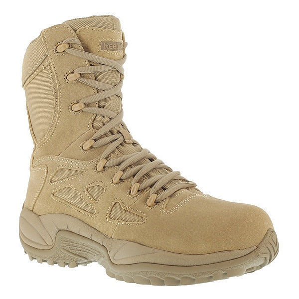 SKU G8863075CategoriesDescription Military Boots, Footwear Style Military/Tactical, 8 1/2, W, Men's, Tan, Front Lace and Side Zipper, Shineable Toe No, Toe Type Plain, Waterproof No, Insulated No, 8 in Height, Tan, Style Number RB8895, 1 PairgraingerSKU: 33JL27, mscSKU: , zoro_no: G8863075, mongo_id: 65bbe83422d7a989a98e1674