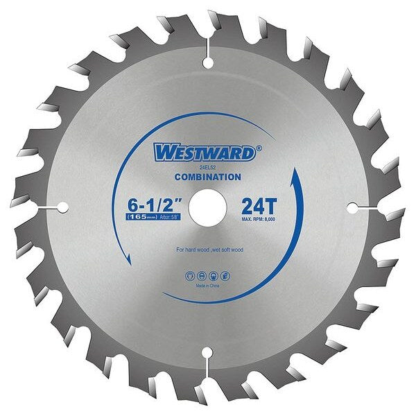 SKU G8554506CategoriesDescription Circular Saw Blade, Blade Dia. 6 1/2 in, Max. Blade Speed 8,000 RPM, Arbor Size 5/8 in, Arbor Shape Round, Diamond Knockout No, Number of Teeth 24, Max. Cutting Depth 2 3/16 in, Primary Material Application Wood, Materials Cut Wood, Wood Cutting Type Combination Cutting, Cut Width 0.071 in, Tip Material Carbide Tipped, Hook Angle 15 Degrees , Tooth Grind ATB, For Use With Saw Type Circular Saws, Blade Type Combination, Plate Thickness 0.047 in, Application Hardwood,, Wet Soft WoodgraingerSKU: 24EL52, mscSKU: , zoro_no: G8554506, mongo_id: 65bbe93422d7a989a993ffb7