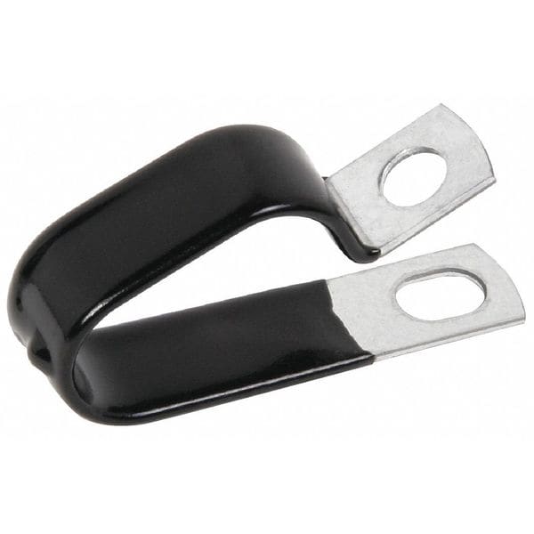 Description Cable Clamp, Cable Clamp, Cushioned Double Tube, Galvanized Steel, Cable Clamping Dia. 5/8 in, Mounting Hole Dia. 0.4063 in, Clamp Thickness 0.048 in, Clamp Band Width 3/4 in, Gray, Vinyl Cushion Type, Hot Dipped Galvanized Clamp Finish, Temp. Range (F) -30 to +180, Vinyl Plastisol Coating Material, Liner Color Black, Package Quantity 500