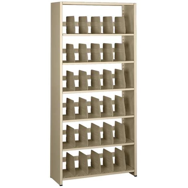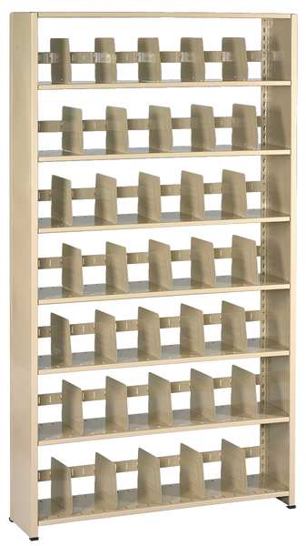 SKU G5734714CategoriesDescription Open File Shelving, Starter, Steel Construction, Sand Color, Powder Coated Finish, 88 in, 36 in, 12 in, Number of Shelves 6, Shelf Capacity 600 lb, Includes (16) Shelf Supports, (2) L Uprights, (35) Adjustable Dividers, (7) Backstops, (8) ShelvesgraingerSKU: 5RGX6, mscSKU: , zoro_no: G5734714, mongo_id: 65bbe86b22d7a989a98f45b3