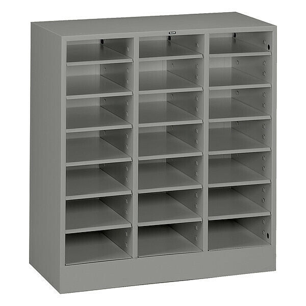 SKU G5421001CategoriesDescription Literature Sorter, Legal Size Openings, Construction Welded Steel and Fully Assembled, Height 33 in, Width 30 5/8 in, Depth 14 1/4 in, Color Medium Gray, Number of Compartments 21graingerSKU: 9ANV5, mscSKU: , zoro_no: G5421001, mongo_id: 65bbe7a23aaddbd5a90a8624