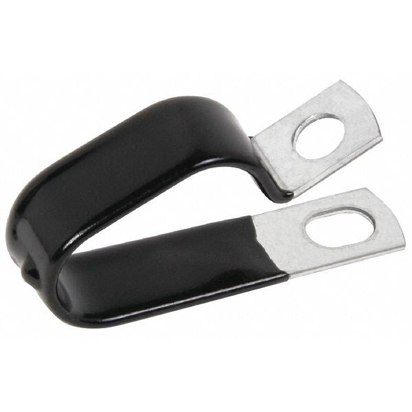 Description Cable Clamp, Cable Clamp, Cushioned Double Tube, Galvanized Steel, Cable Clamping Dia. 7/16 in, Mounting Hole Dia. 0.3438 in, Clamp Thickness 0.032 in, Clamp Band Width 5/8 in, Gray, Vinyl Cushion Type, Hot Dipped Galvanized Clamp Finish, Temp. Range (F) -30 to +180, Vinyl Plastisol Coating Material, Liner Color Black, Package Quantity 10