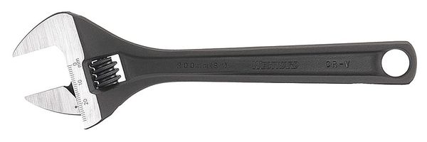Description Adjustable Wrench, Alloy Steel, Black Phosphate, 12 in, Jaw Capacity 1 1/2 in, Ergonomic, One Piece, Screw Mechanism, Measuring Scale Yes, Insulated No, Nonsparking No