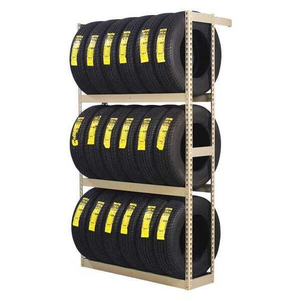 Description Single Sided Boltless Tire Rack, Starter Unit Shelf Configuration, Shelf Depth 12 in, 2,000 lb Load Capacity per Shelf, Number of Shelves 3, Number of Usable Sides 1, Maximum Number of Tires Held 24, Overall Depth 18 in, Overall Height 84 in, Overall Width 60 in, 12 in Deep Unit, 9 in Wall Tie, Medium Gray, Powder Coated, Steel