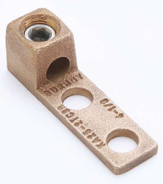 $11.49 / eachWeb priceMechancl Conn, Trminl, 1/0 to 2 AWG, 1 CondSKU G4656933CategoriesDescription Mechanical Connector, For Conductor Material Copper, For Stranded Copper Wire Size - Minimum 2 AWG, For Stranded Copper Wire Size - Maximum 1/0 AWG, For Stud Size 1/4 in, Head Style Slotted, Number of Holes 1, Hole Diameter 0.26 in, Hole Spacing Not Applicable, Body Material Copper, Maximum Operating Temperature 194 Degrees F, Maximum Voltage 600 V, Number of Conductors 1, Number of Terminations 1, Tongue Length Not Applicable, Tongue Width 0.62 in, Tongue Thickness 0.11 ingraingerSKU: 22C139, mscSKU: , zoro_no: G4656933, mongo_id: 65bbe70b3aaddbd5a906ec98