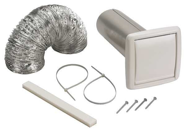 SKU G0931271CategoriesDescription Wall Vent Kit, For Nominal Duct Diameter 3 in, 4 in, For Duct Height Not Applicable, For Duct Width Not Applicable, Inlet Diameter 4 in, Material Plastic, Overall Length 10 in, Product Type Flexible Wall Ducting Kit, Standards UL 181 Class 1, Finish Not Applicable, Color White, Shape Cap, Overall Width 6 1/2 in, Screen Included No Wall Vent Kit, Flexible Duct, 5 ft. L