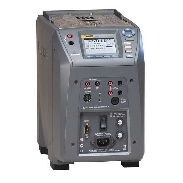 Description Drywell, Thermocouple, Fluke 9150, 302 Degrees to 2192 Degrees F/150 Degrees to 1200 Degrees C, Calibration Details Data at 150 Degrees C, 300 Degrees C, 450 Degrees C, 600 Degrees C, 800 Degrees C, 1000 Degrees C, and 1200 Degrees C, Interface RS-232, Number of Set Points Variable, 12 13/32 in H x 8 13/64 in W x 12 13/32 in D