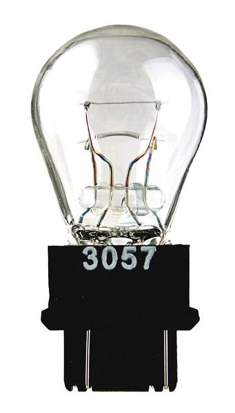 Description Incandescent Bulb, Bulb Base Type Plastic Wedge Double Filament (W2.5x16q), Bulb Housing Glass, Bulb Shape S8, Bulb Finish Clear, Lumens 402/25, Light Technology Incandescent, Shatter-Resistant No, Trade Number 3057LL, Voltage 14V AC, Watts 6.72 W, 26.88 W, Rated Life 2000/10,000 hr, Dimmable No, For Enclosed Fixtures No, Three-Way No, Light Color Clear, Rough Service No, Indoor/Outdoor Usage Indoor Only, Overall Length 2 3/32 in, Light Distribution General