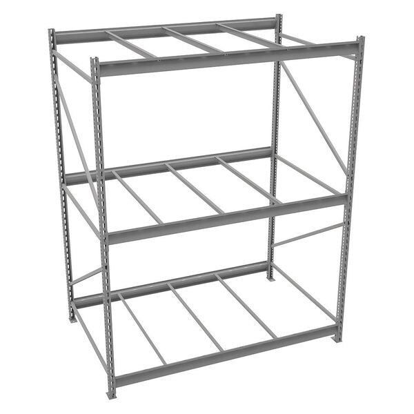 $1,084.99 / eachWeb priceStarter Bulk Storage Rack, 48 in D, 60 in W, 3 ShelvesSKU G1606622CategoriesDescription Bulk Storage Rack, Shelving Type Starter, Overall Width 60 in, Overall Depth 48 in, Overall Height 120 in, Decking Material Steel, No. of Shelves 3, Shelf Capacity 3800 lb, Load Capacity 11,400 lb, Shelving Frame Material Steel, Gray, Finish - Shelving and Racks Powder Coated, Shelf Adjustments 2 in, Shelving Gauge 22, Shelving Post Gauge 14, For Use With Tennesco Bulk Storage and Boltless Racks, Includes (2) End Frames, (3) ShelvesgraingerSKU: 7B142, mscSKU: , zoro_no: G1606622, mongo_id: 65bbe7a79a749db82274ccd6