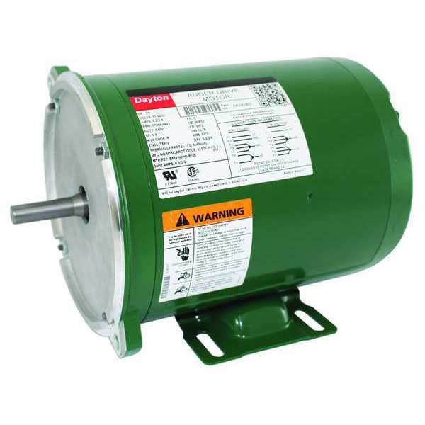 Auger Drive Motor, Capacitor-Start, 1 1/2 HP, 115/230V AC, 1,725 Nameplate RPM, 56Y Frame
