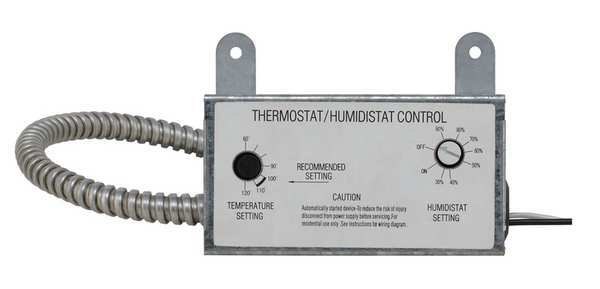 $65.19 / eachWeb priceAttic Fan Thermostat/Humidistat, Close on Rise, SPSTSKU G3896103CategoriesDescription Attic Fan Thermostat/Humidistat, Thermostat Switch Type 2 SPST, Thermostat Control Range 60 Degrees to 120 Degrees F, Thermostat Voltage 120V AC, Full Load Amps @ 120VAC 10 A, Thermostat Heating/Cooling Cooling, Switch Action Close on Rise, Number of Switches 2, Differential 10 Degrees F, Height 4 3/16 in, Width 6 1/4 in, Depth 1 7/8 in, Sensor Type Bi-Metallic Spring, Color Galvinized FinishgraingerSKU: 10N203, mscSKU: , zoro_no: G3896103, mongo_id: 65bbe77c9a749db82273f4da