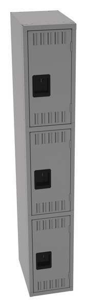 SKU G0152111CategoriesDescription Wardrobe Locker, Audit Trail Storage None, Frame Assembled Assembled, Number of Tiers 3, Number of Units Wide 1, Door Type Louvered, Frame Material Thickness 16 ga, Includes Number Plates Yes, Locker Color Medium Gray, Lock Type Padlock Hasp, Overall Depth 18 in, Overall Height 72 in, Overall Width 12 in, Handle Type Recessed Lift, Locker Finish Powder Coated, Locker Material Steel, Number of Lockers 3, Opening Depth 16 7/8 in, Opening Height 22 1/4 in, Opening Width 9 5/8 ingraingerSKU: 39FP73, mscSKU: , zoro_no: G0152111, mongo_id: 65bbe9db22d7a989a997e656