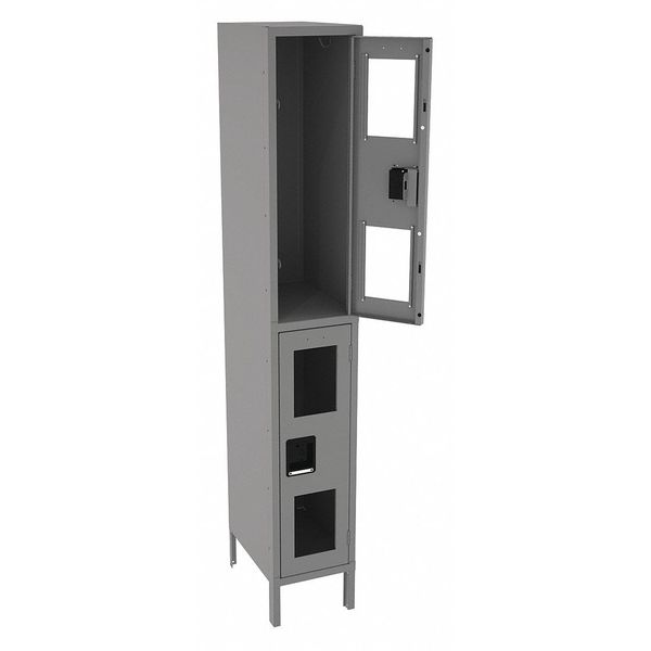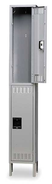 SKU G5431571CategoriesDescription Wardrobe Locker, Audit Trail Storage None, Frame Assembled Assembled, Number of Tiers 2, Number of Units Wide 1, Door Type Clearview, Frame Material Thickness 16 ga, Includes Number Plates Yes, Locker Color Gray, Lock Type Padlock Hasp, Overall Depth 18 in, Overall Height 78 in, Overall Width 12 in, Handle Type Recessed Lift, Includes ID Plate, Locker Finish Powder Coated, Locker Material Steel, Number of Lockers 2, Opening Depth 16 7/8 in, Opening Height 34 1/4 in, Opening Width 9 5/8 ingraingerSKU: 8DXJ8, mscSKU: , zoro_no: G5431571, mongo_id: 65bbe98f22d7a989a9961a0e
