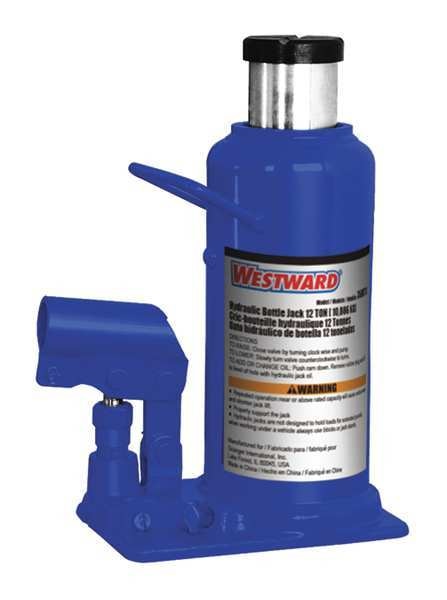 Description High-Clearance Bottle Jacks, Jack Type Bottle Jack, Load Capacity 12 ton, Body Material Steel, Lifting Actuator Manual Handle, Minimum Lift Height 9 1/2 in, Maximum Lift Height 18 1/2 in, Power Source Mechanical, Minimum Height 9 1/2 in, Standards ANSI/ASME PALD, Base Length 6 13/16 in, Base Width 4 11/16 in, Body Material Finish Painted, Extension Screw Length 3 1/8 in, Features Centered Pump and Ram, Heat Treated Extension Screw, Handle Length 25 1/2 in, Stroke 5 3/4 in