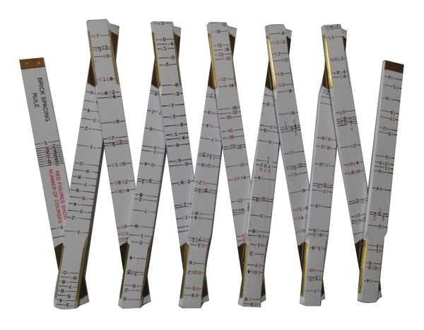 Description Brick Mason Folding Rule, Thickness 1.81 in, Graduation Marks 1/16 in, Coating Abrasive Resistant Epoxy, Graduation Color Red, Flexibility Rigid, Graduation Mark Style Etched, Edge Style Not Applicable, Orientation Vertical, Folding Rule Type Outside Read, Backing Material Not Applicable, Finish Unfinished, System of Measurement Metric/SAE, Accuracy +/-1.4mm, Rule Type Folding Rule, Numeric Marks Inches, Millimeters, Numeric Format Fractional, Length - SAE 6 ft, Length - Metric 1,800 mm