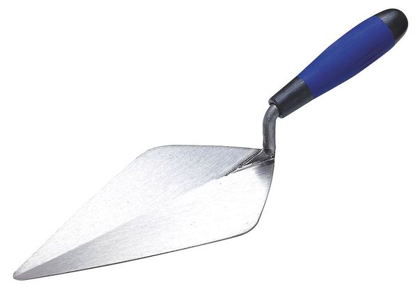 Description Brick Trowel, Narrow London, Narrow London Pattern, Length (In.) 11, Width (In.) 4-3/4, High Carbon Steel Material, ErgoSoft Handle, Handle Length (In.) 6, Handle Dia. (In.) 1-3/8, For Applying Mortar to Brick
