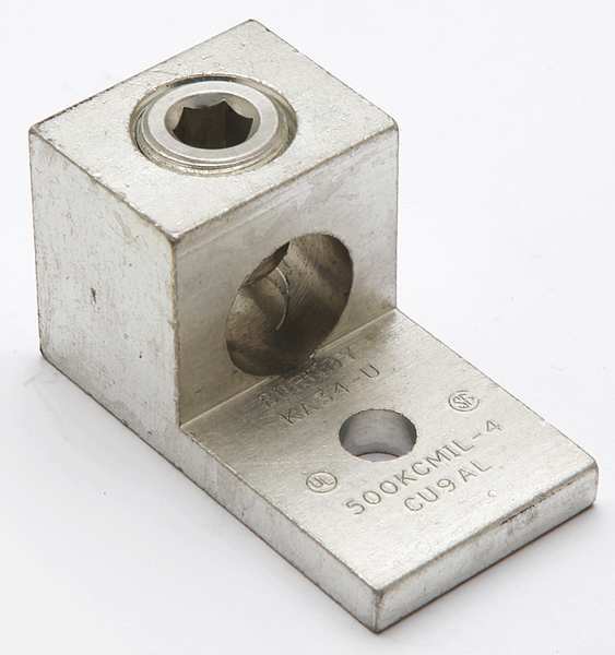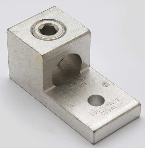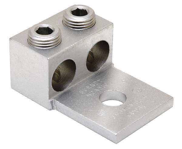 SKU G4659645CategoriesDescription Mechanical Connector, For Conductor Material Aluminum, Copper, For Stranded Copper Wire Size - Minimum 2 AWG, For Stranded Copper Wire Size - Maximum 600 kcmil, For Stud Size 1/2 in, Head Style Slotted, Number of Holes 1, Hole Diameter 0.53 in, Hole Spacing Not Applicable, Body Material Aluminum, Maximum Operating Temperature 194 Degrees F, Maximum Voltage 600 V, Number of Conductors 2, Number of Terminations 2, Tongue Length 1.75 in, Tongue Width 2.42 in, Tongue Thickness 0.44 ingraingerSKU: 22C193, mscSKU: , zoro_no: G4659645, mongo_id: 65bbe84022d7a989a98e5d43