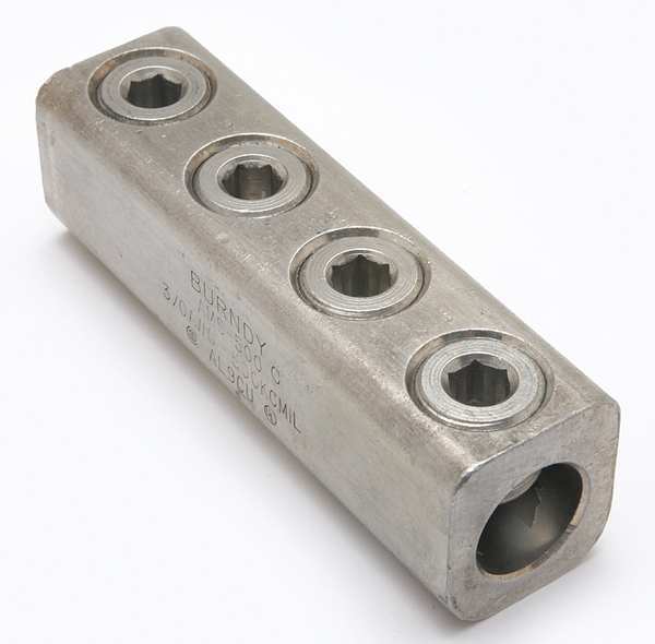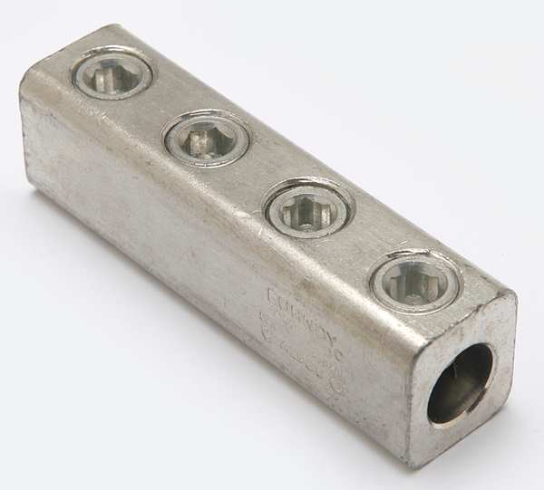 SKU G4674047CategoriesDescription Mechanical Connector, For Conductor Material Aluminum, Copper, For Stranded Copper Wire Size - Minimum 3/0 AWG, For Stranded Copper Wire Size - Maximum 500 kcmil, For Stud Size 13/16 in, Head Style Hex, Number of Holes Not Applicable, Hole Diameter Not Applicable, Hole Spacing Not Applicable, Body Material Aluminum, Maximum Operating Temperature 194 Degrees F, Maximum Voltage 600 V, Number of Conductors 2, Number of Terminations 4, Tongue Width Not Applicable, Tongue Thickness Not ApplicablegraingerSKU: 22C215, mscSKU: , zoro_no: G4674047, mongo_id: 65bbee11526e052139aead7c