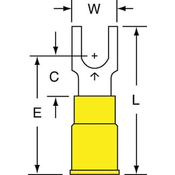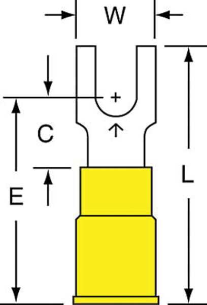 SKU G2582072CategoriesDescription Fork Terminal, Contact Finish Tin, Contact Material Copper, Insulation Color Yellow, Insulation Material Nylon, Maximum Operating Temperature 221 Degrees F, Maximum Voltage 600 V, Maximum Wire Size 10 AWG, Stud Size #8, Termination Style Crimp, RoHS Compliant Yes, Seam Style Butted, Standards CSA Certified, UL Listed, Barrel Length 0.55 in, Barrel Style Insulation Grip, Connection Material Copper, Connection Type Crimp, Minimum Wire Size 12 AWG, Overall Length 1.03 in, Package Quantity 50graingerSKU: 3RWL2, mscSKU: , zoro_no: G2582072, mongo_id: 65bbe94f22d7a989a994a1b5