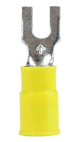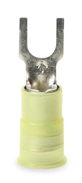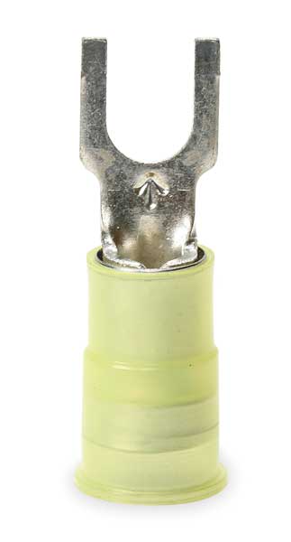 SKU G5801372CategoriesDescription Fork Terminal, Contact Finish Tin, Contact Material Copper, Insulation Color Yellow, Insulation Material Nylon, Maximum Operating Temperature 221 Degrees F, Maximum Voltage 600 V, Maximum Wire Size 10 AWG, Stud Size #8, Termination Style Crimp, RoHS Compliant Yes, Seam Style Butted, Standards CSA Certified, UL Listed, Barrel Length 0.55 in, Barrel Style Insulation Grip, Connection Material Copper, Connection Type Crimp, Minimum Wire Size 12 AWG, Overall Length 1.03 in, Package Quantity 500graingerSKU: 2DPY9, mscSKU: , zoro_no: G5801372, mongo_id: 65bbe7553aaddbd5a908b6ca