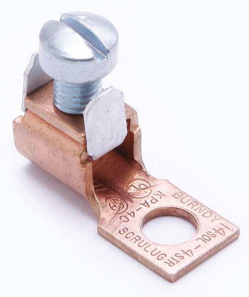 SKU G4670321CategoriesDescription Mechanical Connector, For Conductor Material Copper, For Stranded Copper Wire Size - Minimum 4 AWG, For Stranded Copper Wire Size - Maximum 1/0 AWG, For Stud Size 3/8 in, Head Style Hex, Number of Holes 1, Hole Diameter 0.42 in, Hole Spacing Not Applicable, Body Material Copper, Maximum Operating Temperature 194 Degrees F, Maximum Voltage 600 V, Number of Conductors 1, Number of Terminations 1, Tongue Length Not Applicable, Tongue Width 0.75 in, Connector Type Terminal, Standards UL ListedgraingerSKU: 22C147, mscSKU: , zoro_no: G4670321, mongo_id: 65bbe8479a749db822781e2a