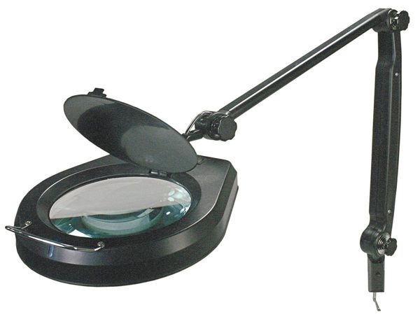 $199.99 / eachWeb priceLUMAPRO 5 W, LED Articulating Arm Oversized Round Magnifier LightSKU G4856476Categories Lighting ToolsDescription Round Magnifier Light, Arm Design Articulating, Arm Reach 16 in, Color Black, Diopter 3, Lens Diameter 7 in, Lens Shape Round, Lighting Technology LED, Magnification 1.75x, Maximum Brightness 767 lm, Mount Type Clamp, Operating Voltage 120 to 240V AC, Includes Ultraviolet Light No, Dimmable No, ESD Safe Yes, Features Internal Spring ArmgraingerSKU: 10C906, mscSKU: , zoro_no: G4856476, mongo_id: 65bbe7bf9a749db8227537e2
