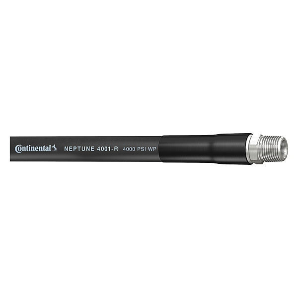 Description Pressure Washer Hose, Hose Inside Dia. 3/8 in, Hose Outside Dia. 0.6875 in, Hose Length 25 ft, Hose Color Black, Hose Tube Material Nitrile, Hose Cover Material Neoprene, Burst Pressure 16,000 psi, Max. Working Pressure @ 70 F 4,000 psi, Temp. Range -20 Degrees to 250 Degrees F, Hose Reinforcement Type Braid, Hose Reinforcement Material Carbon Steel, Safety Factor 4:1, Bend Radius 3 3/4 in, Hose Fitting A Material Carbon Steel, Hose Fitting B Material Carbon Steel, Hose Fitting A Type MNPT