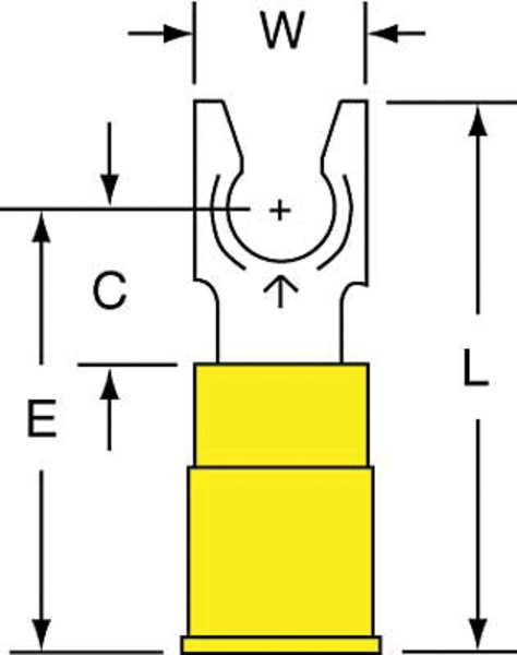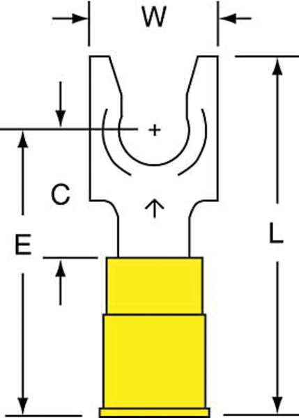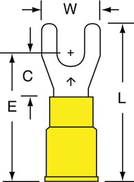 SKU G0915397CategoriesDescription Fork Terminal, Contact Finish Tin, Contact Material Copper, Insulation Color Yellow, Insulation Material Nylon, Maximum Operating Temperature 221 Degrees F, Maximum Voltage 600 V, Maximum Wire Size 10 AWG, Stud Size #10, Termination Style Crimp, RoHS Compliant Yes, Seam Style Butted, Standards CSA Certified, UL Listed, Barrel Length 0.55 in, Barrel Style Insulation Grip, Connection Material Copper, Connection Type Crimp, Minimum Wire Size 12 AWG, Overall Length 1.03 in, Package Quantity 50graingerSKU: 3RWK8, mscSKU: , zoro_no: G0915397, mongo_id: 65bbe81a9a749db8227737d4