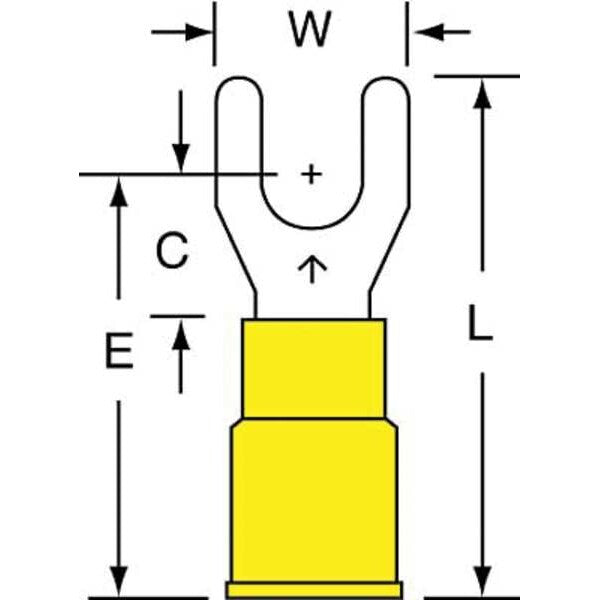 SKU G3489491CategoriesDescription Fork Terminal, Contact Finish Tin, Contact Material Copper, Insulation Color Yellow, Insulation Material Nylon, Maximum Operating Temperature 221 Degrees F, Maximum Voltage 600 V, Maximum Wire Size 10 AWG, Stud Size #8, Termination Style Crimp, RoHS Compliant Yes, Seam Style Butted, Standards CSA Certified, UL Listed, Barrel Length 0.55 in, Barrel Style Insulation Grip, Connection Material Copper, Connection Type Crimp, Minimum Wire Size 12 AWG, Overall Length 1.03 in, Package Quantity 50graingerSKU: , mscSKU: , zoro_no: G3489491, mongo_id: 65bbe61c3aaddbd5a900a8ac