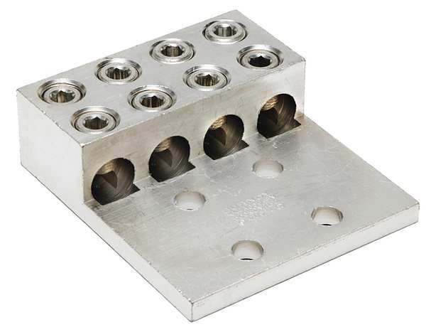 SKU G4682501CategoriesDescription Mechanical Connector, For Conductor Material Aluminum, Copper, For Stranded Copper Wire Size - Minimum 2 AWG, For Stranded Copper Wire Size - Maximum 600 kcmil, For Stud Size 1/2 in, Head Style Hex, Number of Holes 4, Hole Diameter 0.56 in, Hole Spacing 1.75 in, Body Material Aluminum, Maximum Operating Temperature 194 Degrees F, Maximum Voltage 600 V, Number of Conductors 4, Number of Terminations 8, Tongue Length 3.34 in, Tongue Width 5 in, Tongue Thickness 0.44 in, Connector Type TerminalgraingerSKU: 22C209, mscSKU: , zoro_no: G4682501, mongo_id: 65bbe81a9a749db8227737e9